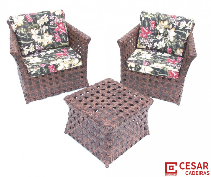 Jogo composto de duas poltronas e uma mesa de centro.