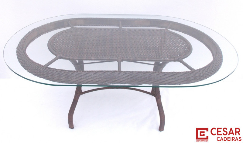 Mesa de jantar Oval, Modelo Balli, com estrutura em aço galvanizado e revestimento em junco sintético.