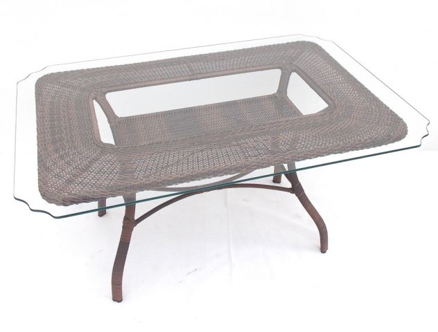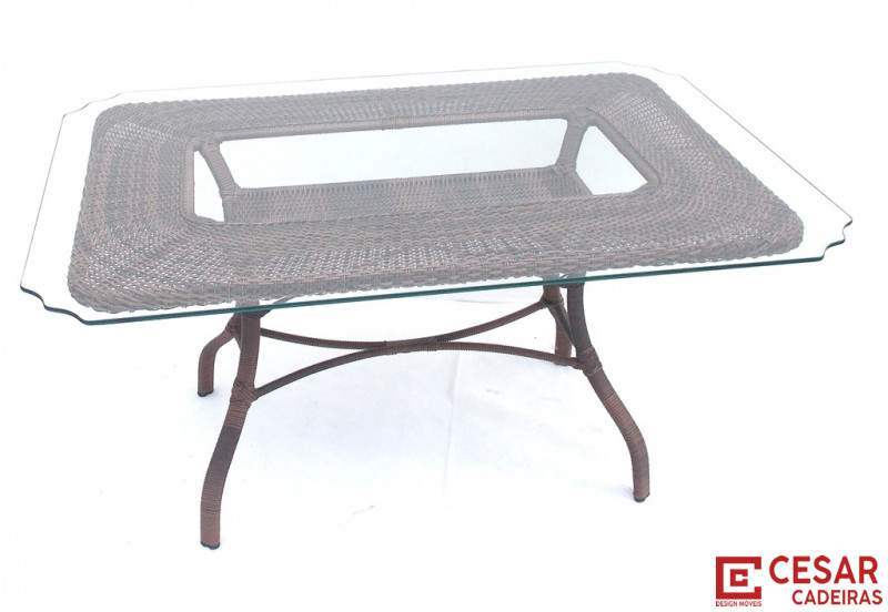 Mesa de jantar, retangular, de junco artificial, com estrutura em aço galvanizado.