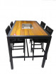 Jogo de mesa, mesa aluminio com tampo de madeira ripada.