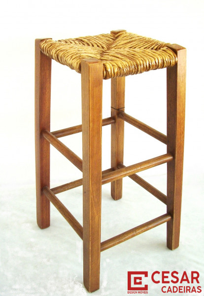 Banqueta de madeira e palha / Banquetas