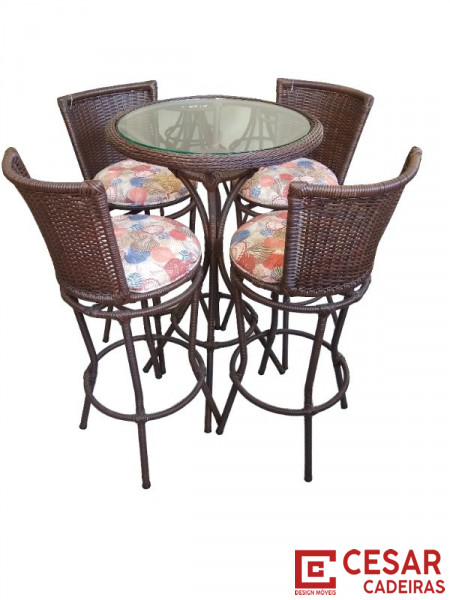 Mesa Bistrô Junco Ratan e Fibra Sintética / Mesas Bistro bancada