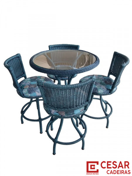 Jogo de mesa Araça, com vidro de 60 cm.