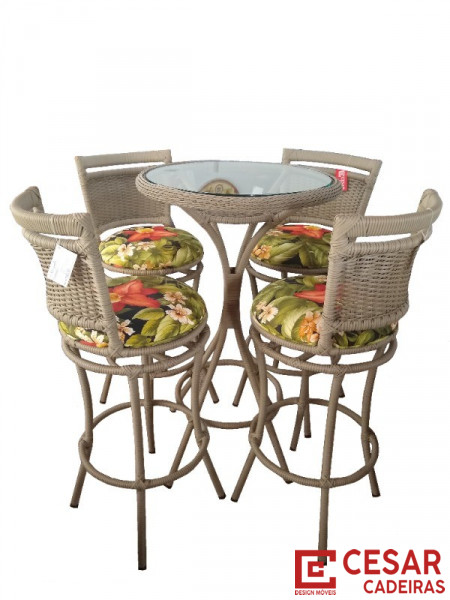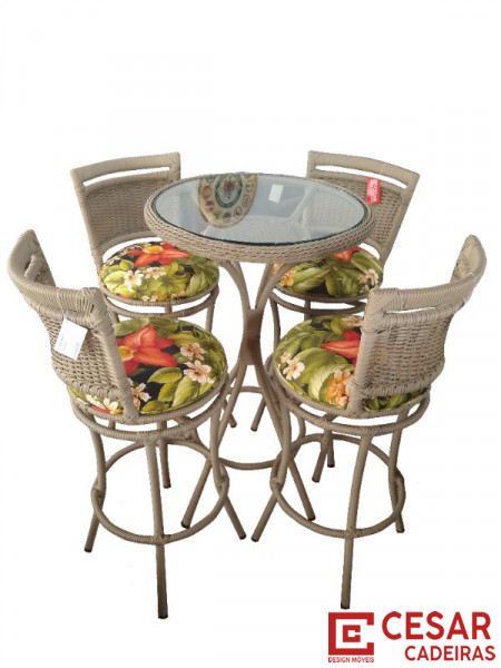 Mesa Bistrô Junco Ratan e Fibra Sintética / Mesas Bistro bancada