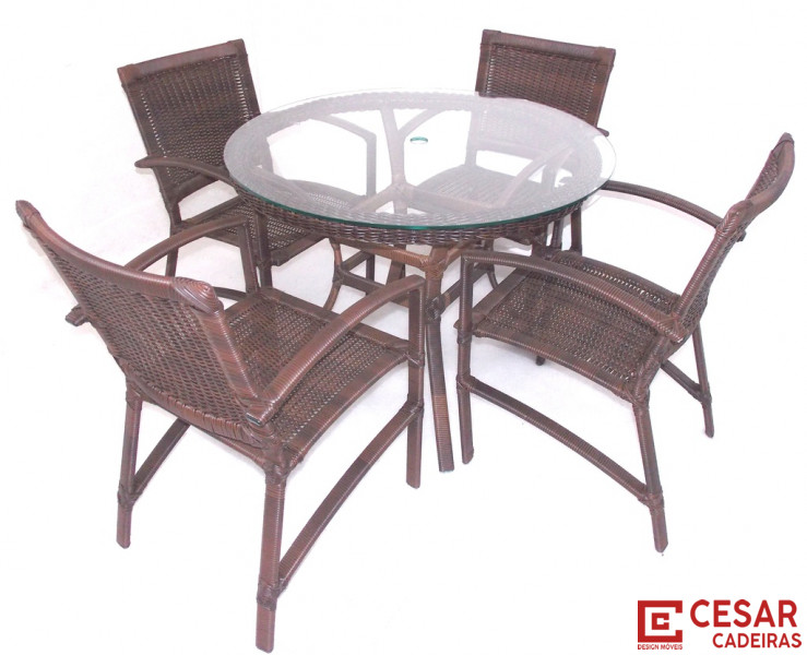 Jogo de mesa Solares com borda de alumínio com fibra Sintética e cadeiras Flora