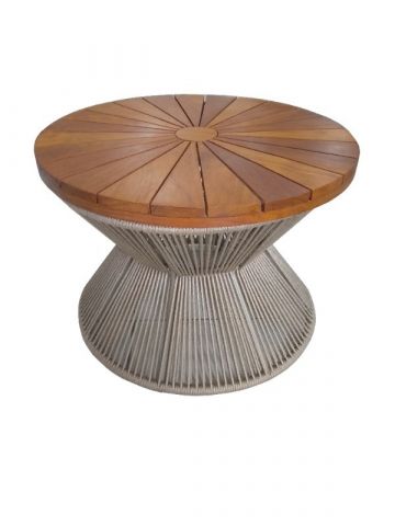 Mesa de centro Garden, com tampo de madeira pizza.