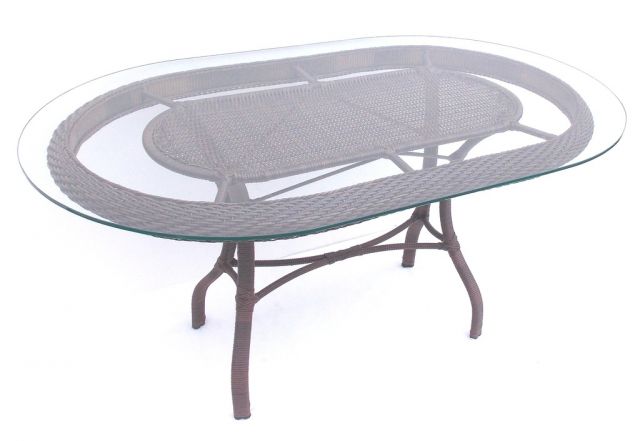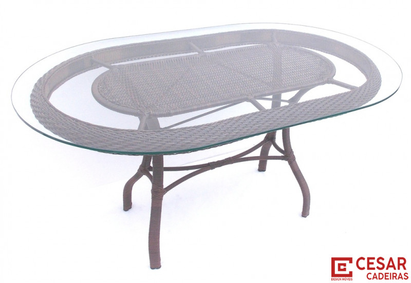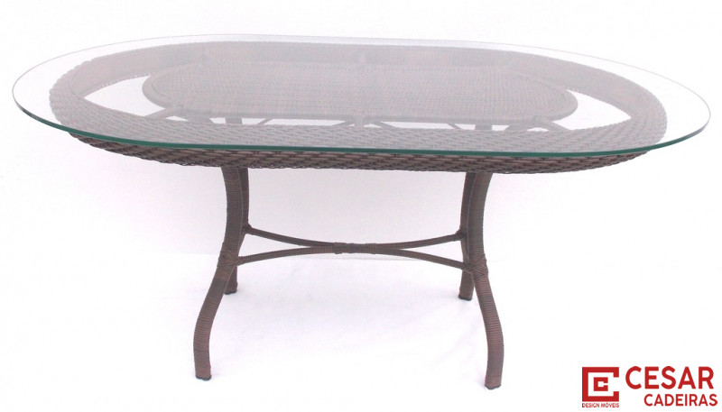 Mesa de jantar Oval, Modelo Balli, com estrutura em aço galvanizado e revestimento em junco sintético.