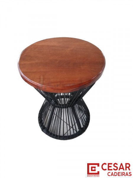 Mesa lateral Garden de fibra sintética com tanto de madeira.