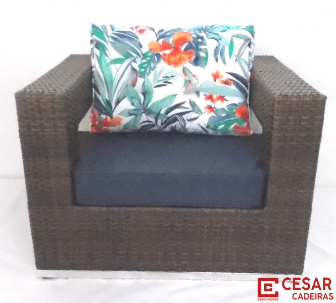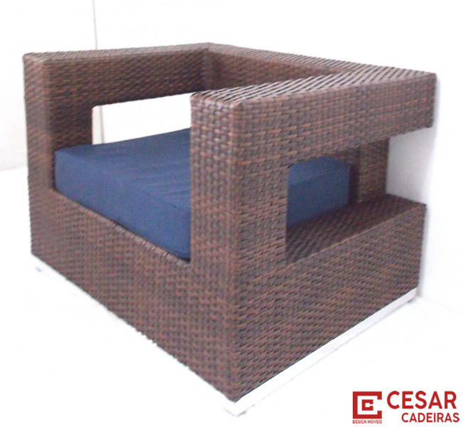 Poltrona Rio Nilo com estrutura em alumínio e o revestimento em fibra sintética.