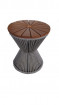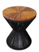 Mesa lateral, de fibra sintética, com tampo pizza de madeira.