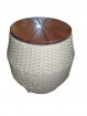 Mesa lateral, em corda náutica, tampo de madeira ripada.