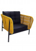 Poltrona Calábria, com estrutura em alumínio e corda náutica.